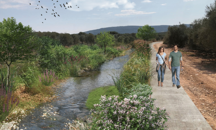 שיקום נחל צלמון מקטע עמק הזיתים - מצב מתוכנן - קרדיט הדמיה ליגמ פרויקטים סביבתיים