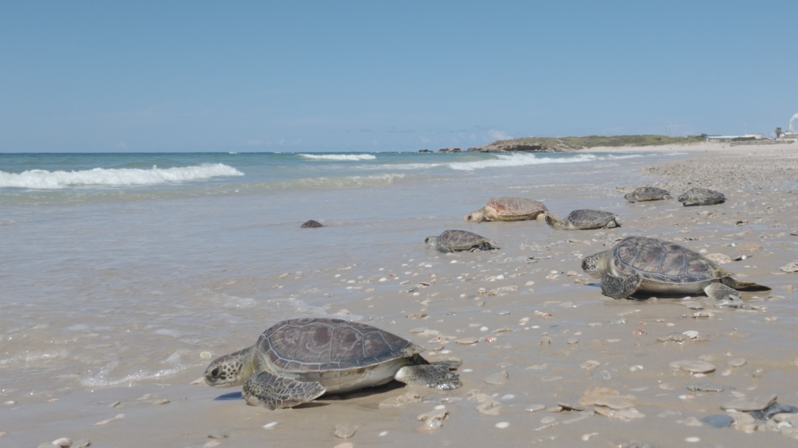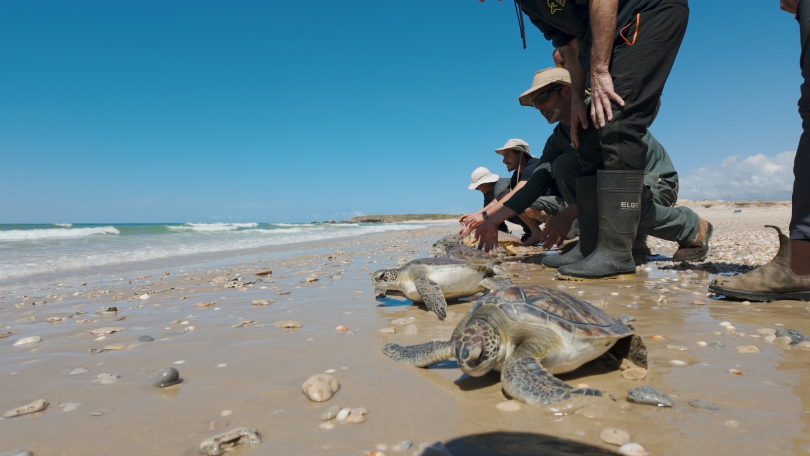 אתמול, בסיוע צוות ומתנדבי המרכז, שוחררו שלושה מקבצי צבי ים בגילים שונים. בתחילה שוחררו 6 צבי ים חומים קטנים: מסי, זאב, יהושע, מקלוק, זיפזיף, טום טום ו-2 צבי ים ירוקים – אירנה ושקדן. משקלם של הצבים נע בין 175-880 גרם והם סבלו מפציעות שונות עקב הסתבכות בשקי פלסטיק, חוטי דיג ופצעי נשיכה. לרוב, צבי ים קטנים משוחררים בלב ים כדי לסייע להם לשוב אל בית הגידול הטבעי שלהם, אך עקב המצב הבטחוני לא התאפשר לבצע זאת.