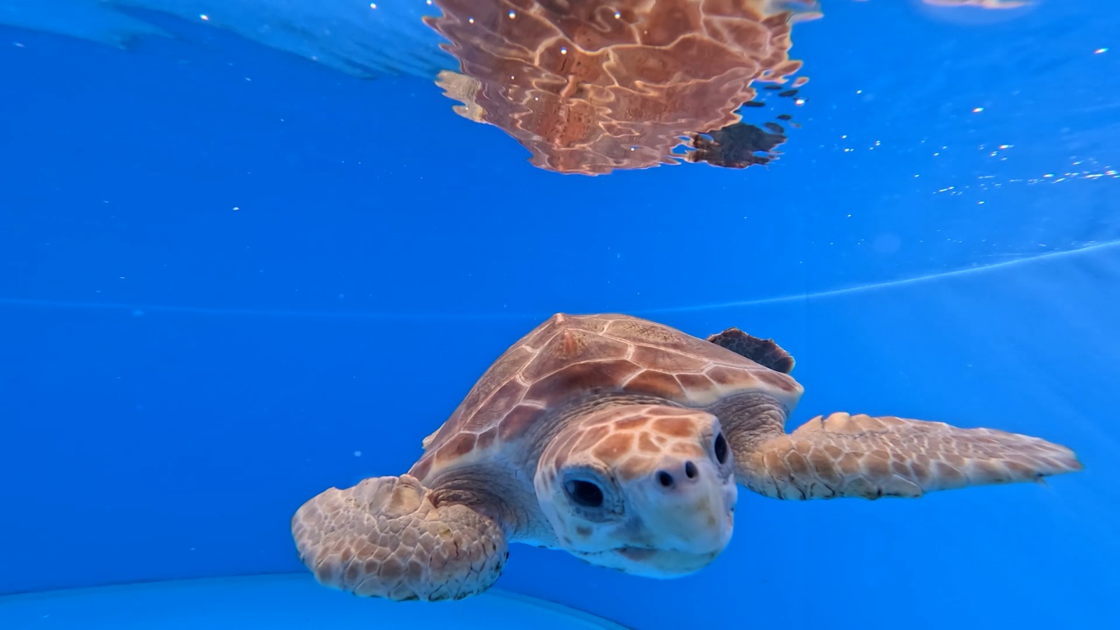 ים, צב ים חום צעיר בבריכת השיקום במרכז ההצלה צילום ארז ארליכמן רשות הטבע והגנים