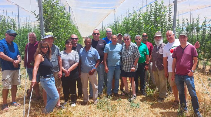 ארגון מגדלי הפירות בישראל קיים סיור חירום במטעי צפון רמת הגולן ובחברת השיווק 'בראשית' עם משלחת נציגי ארגונים חקלאיים